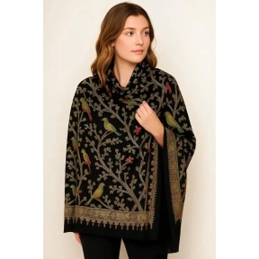 New Black Bird Branch Shawl Wrap Botanical Embroidery Pattern with Border Trim €49.90 Price add to cart
