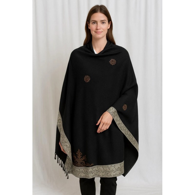 This beautifully embroidered shawl offers a chic and versatile option for adding warmth and style to any outfit, whether you're dressing up for an evening out or layering it over casual attire
